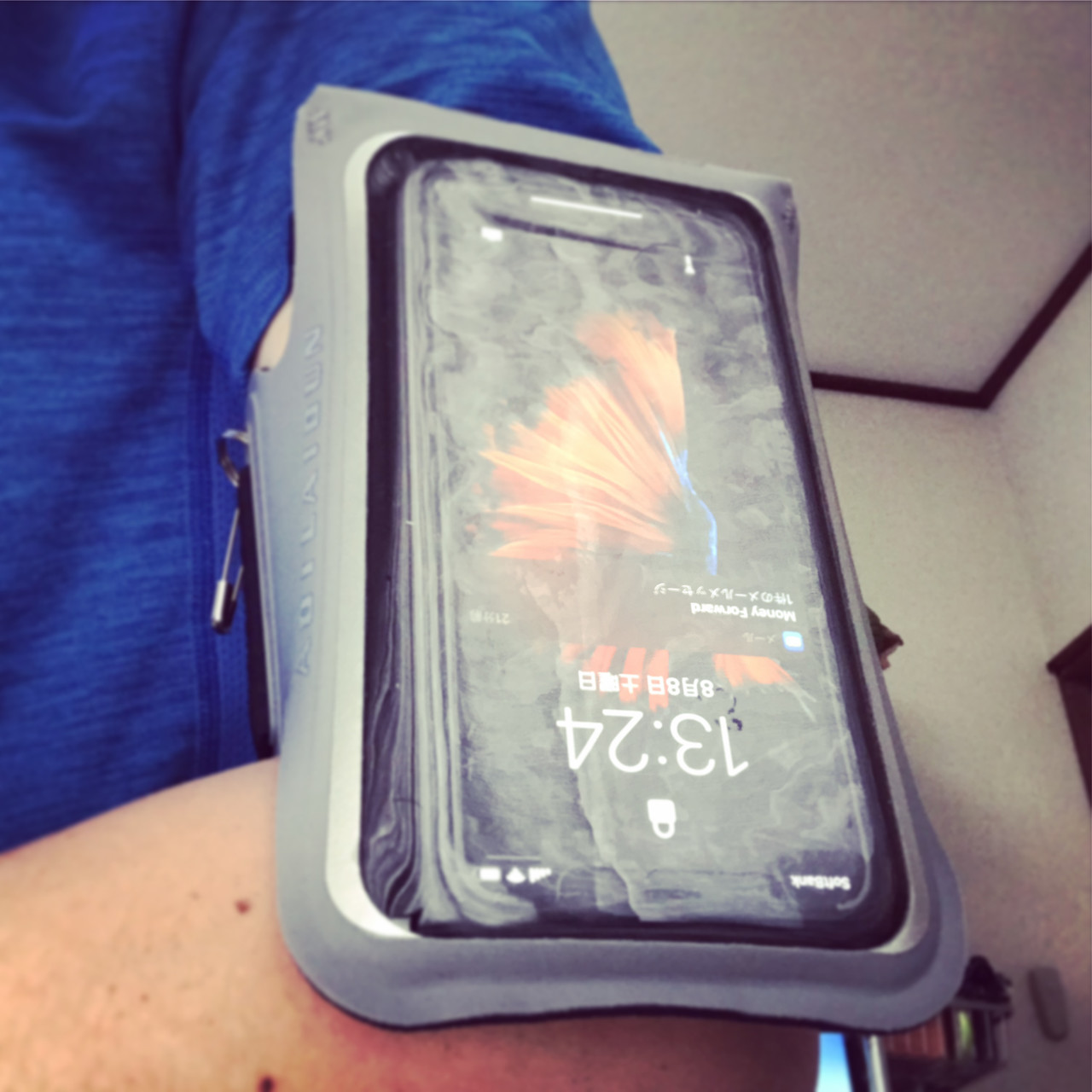 スマホ アームバンドケースとどいた。今のがボロボロになってきたのでね。