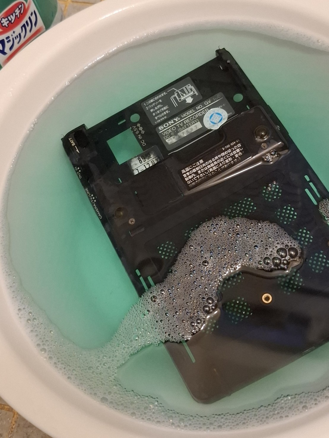 外装ベタベタのビデオウォークマンSONY GV-100を、岩ちゃんさん考案のマジックリン浴でベタつきを除去しました。
