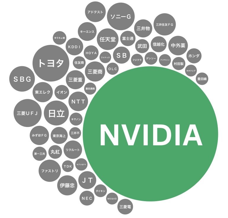 時価総額世界1位(NVIDIA)と日本企業時価総額TOP50の比較