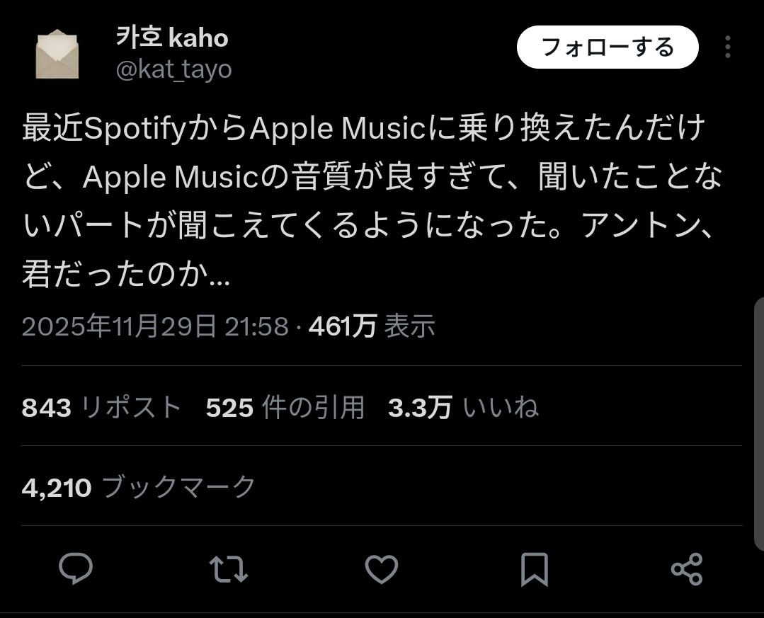 確かに、AppleMusicはダイナミックレンジが広くて、一般ユーザーや素人目には音が良く感じることがあります。