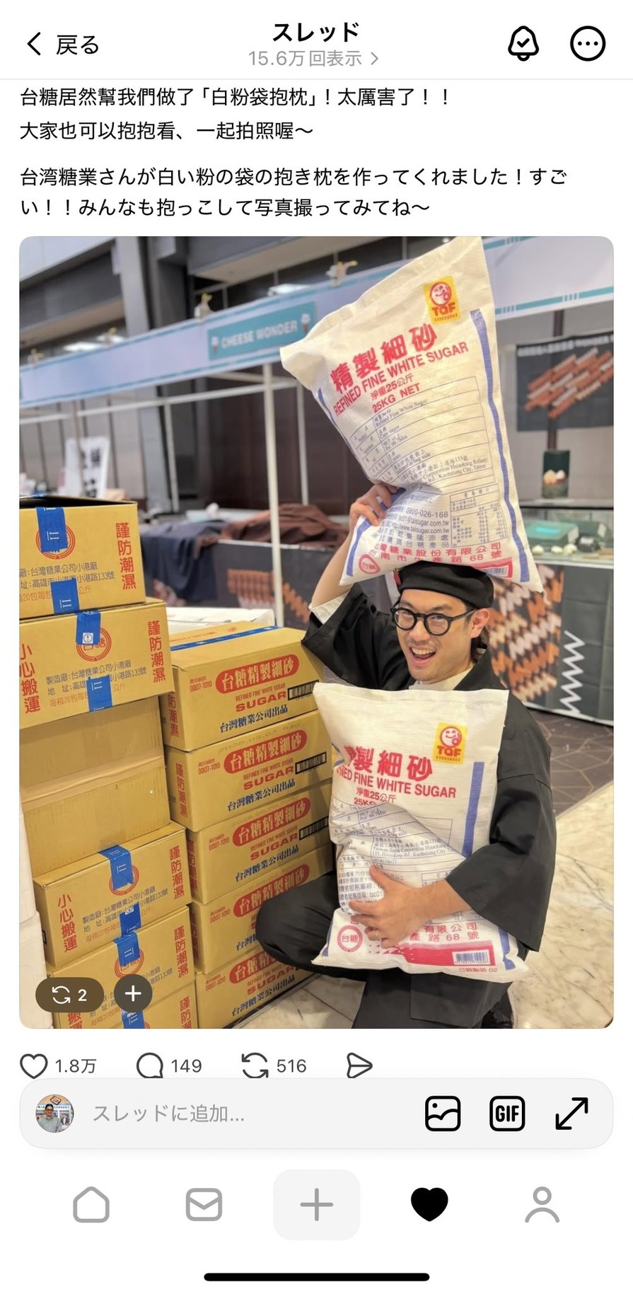 製造元の巨大国営企業、台湾糖業公司から連絡がくる