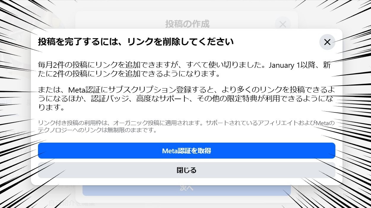 ザッカバーグさん、これは流石にダメでしょ!?12月から、Facebookの無料アカウントでは「リンク付きの投稿は月2回まで」になってしまったようです。これじゃ広報に使えないのでFacebook運用止めます…
