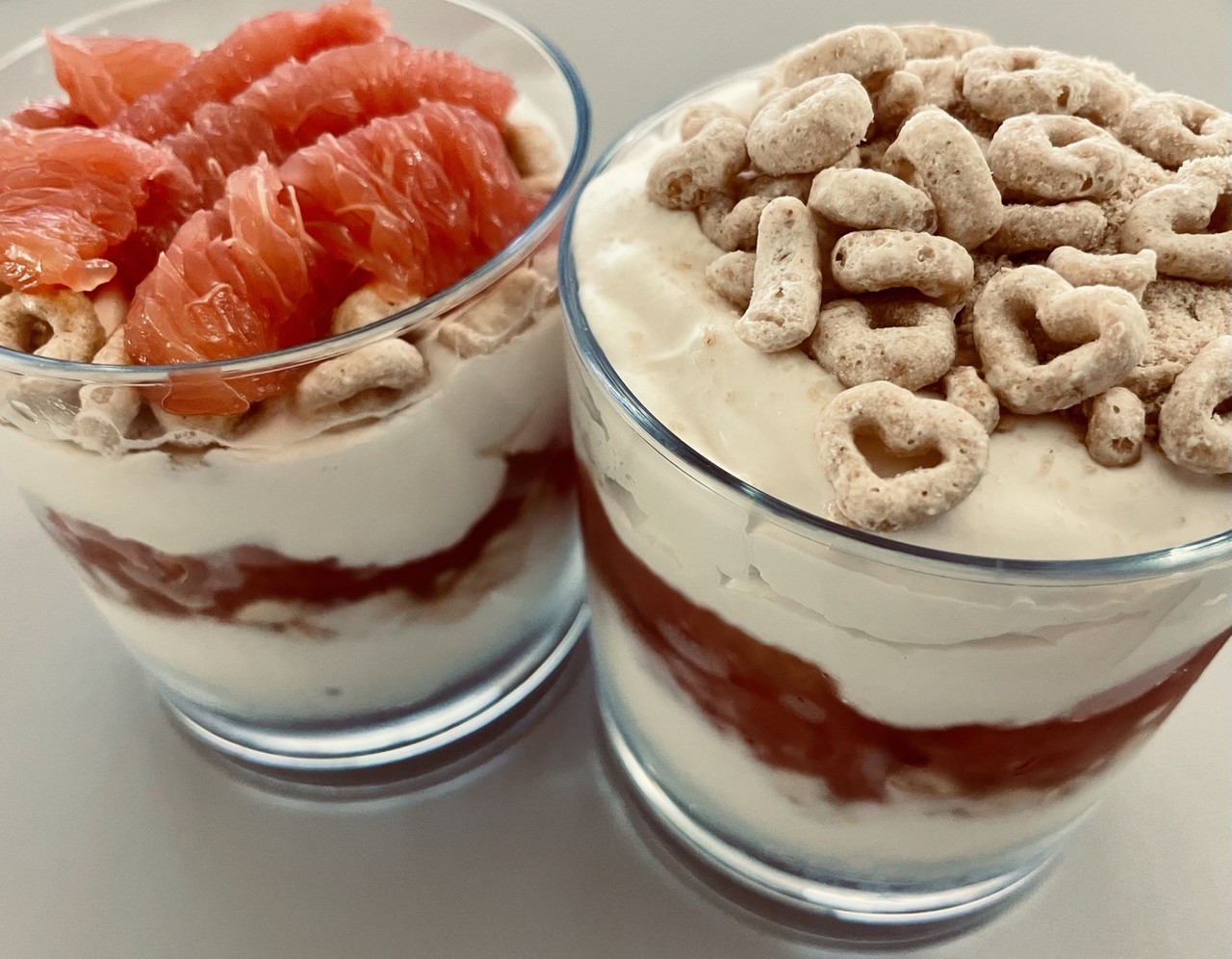 上から順にシリアル(とグレープフルーツ)生クリームグレープフルーツオートミールヨーグルトオートミール