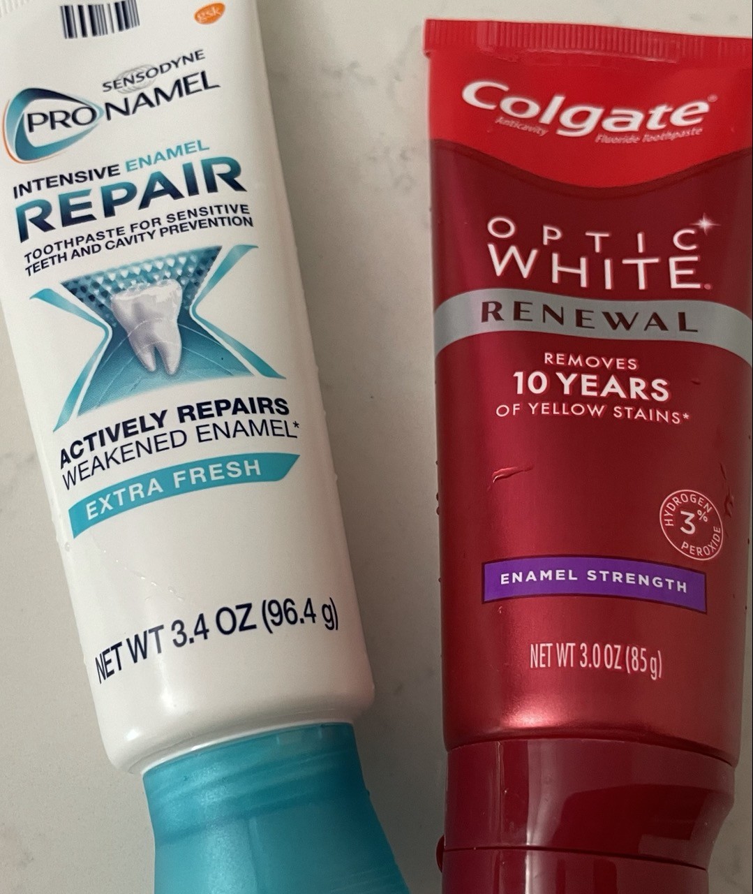 ホワイトニング用歯磨き粉(赤)買ったら3%過酸化水素入ってて最初は気にならなかったんだけどだんだんピリピリして辛くなってきた。知覚過敏も気になってたのでシュミテクト(白)に変えた。
