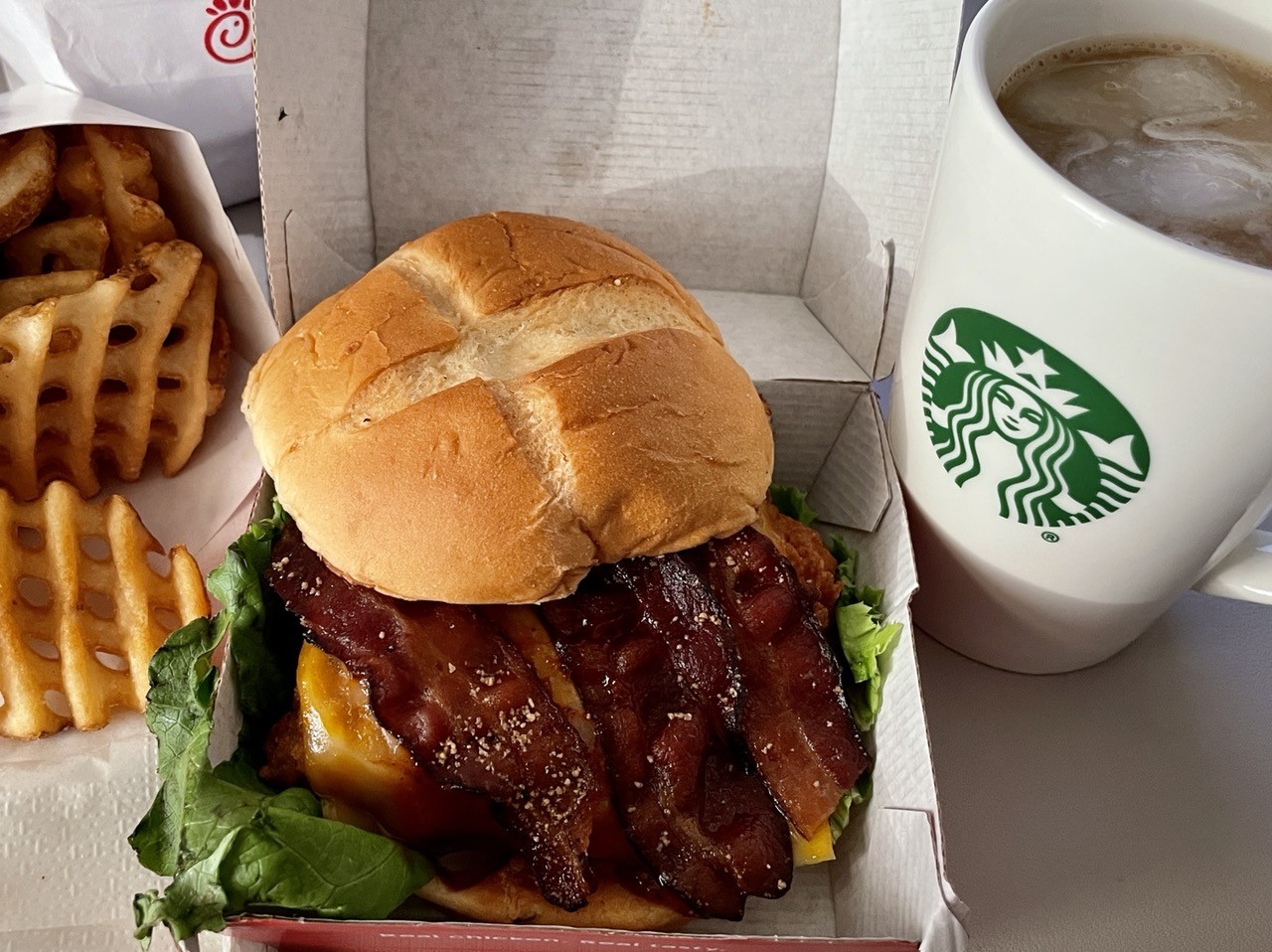 意識高い系チキン専門ファストフードにブラウンシュガーでカリカリにされたベーコンをトッピングして台無しにスタバなう。