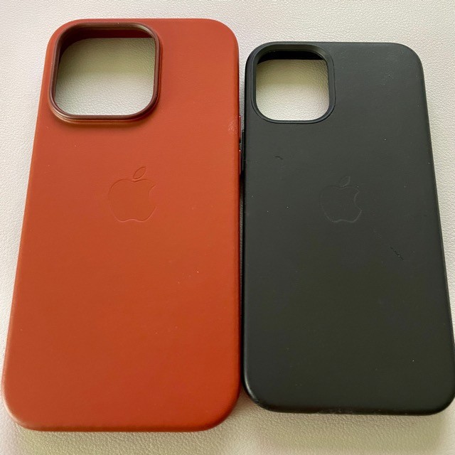 14Proレザーケース届いた。12 miniのケースがすっぽり入ってしまう大きさ…わかってたけどminiに慣れてるとやっぱデカいと感じるな…まあ片手で持って違和感のない大きさではあるけど…なによりカメラ穴のデカさに引いた🙃