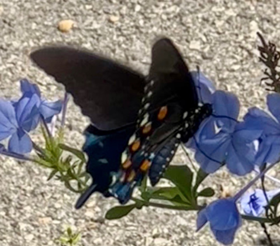 一匹だけ青いキレイな蝶々だったのに全然じっとしてくれなくてブレブレ。ジャポニカ学習帳ならず…🥺