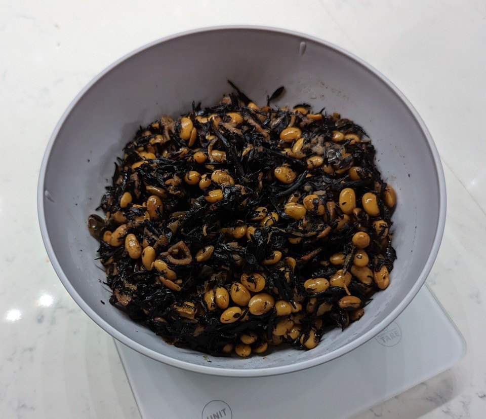 眠れずにひじきと大豆を煮るおじさん。