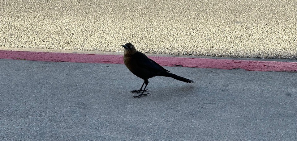 ベンチに座ってたら足元に落ちてたクラッカーを狙って目を背けながら近付いてきたムクドリモドキ。