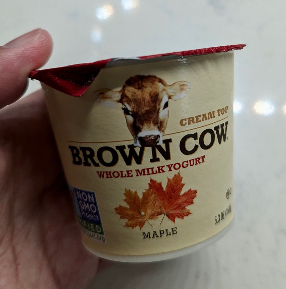 クリームが上に乗った脂肪分たっぷりヨーグルト。メープル味がおすすめ。