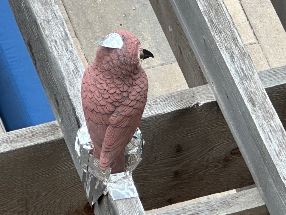 1ミリも役立っていない鳥よけの後ろ姿をご覧下さい。