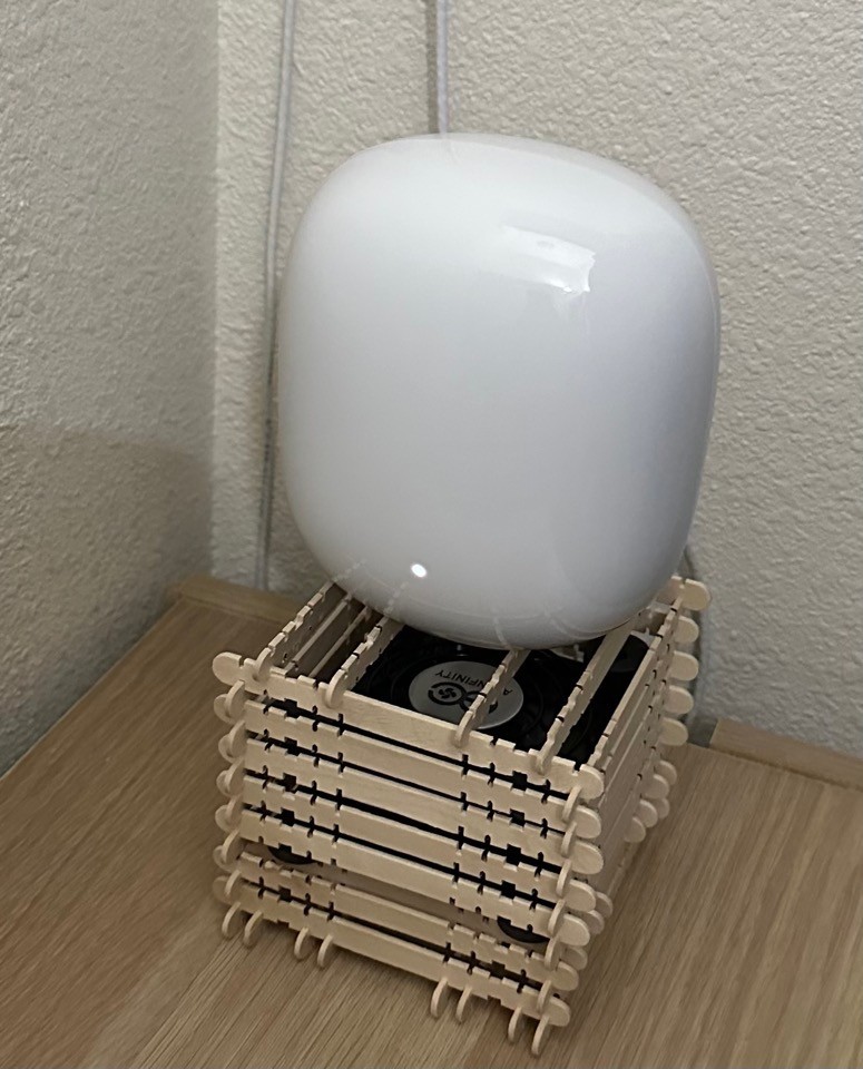 3Dプリンタがないので$3.5の子供用木片工作セットで冷却台を自作する「できるかな」世代のぼく。
