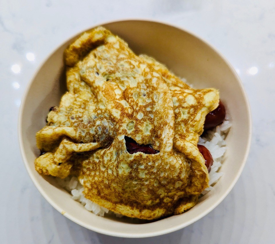 飯テロが続きましたので、ここで一旦、私が全力で再現いたしましたきんし丼をご覧ください。玉子の下に隠れているのはウィ、うなぎでございます。