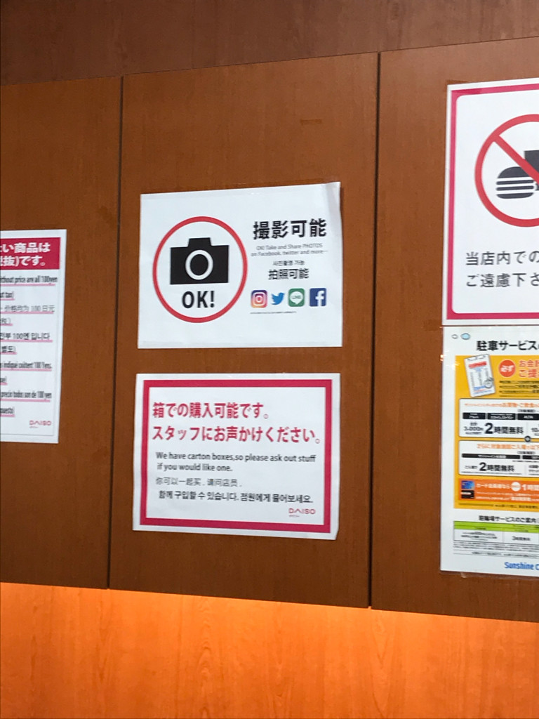 ラゾーナが撮影NGで思い出した最近いろんな店舗で撮影OKNGの張り紙が増えてきてるんだけど海外の方が撮ったりもするから英語で書かれてるケースが多くなってます。一方でこういう張り紙あると逆に撮りやすいのでありがたいといえばありがたい敷地内はNGだけど店舗はOKみたいな特殊ケースもありますね