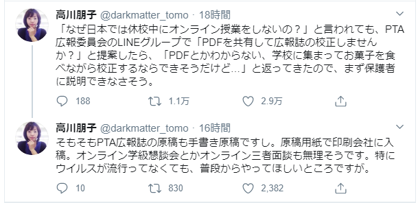 欧米ではオンライン授業始まってるけど日本でできない現状がこういうことなんだけど元PTA副会長目線からみてもほんとこれなので公立はまず無理だろうなぁ