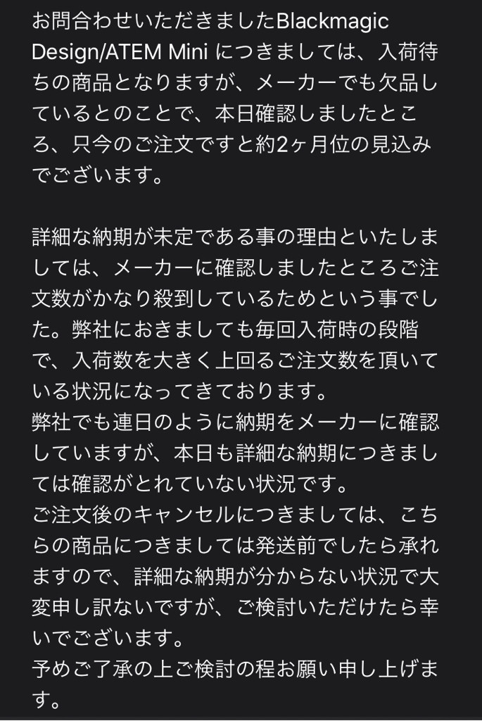 ATEM mini7月かぁ、どうしよ🙄気持ちとしてはもういいかな感も否めないw