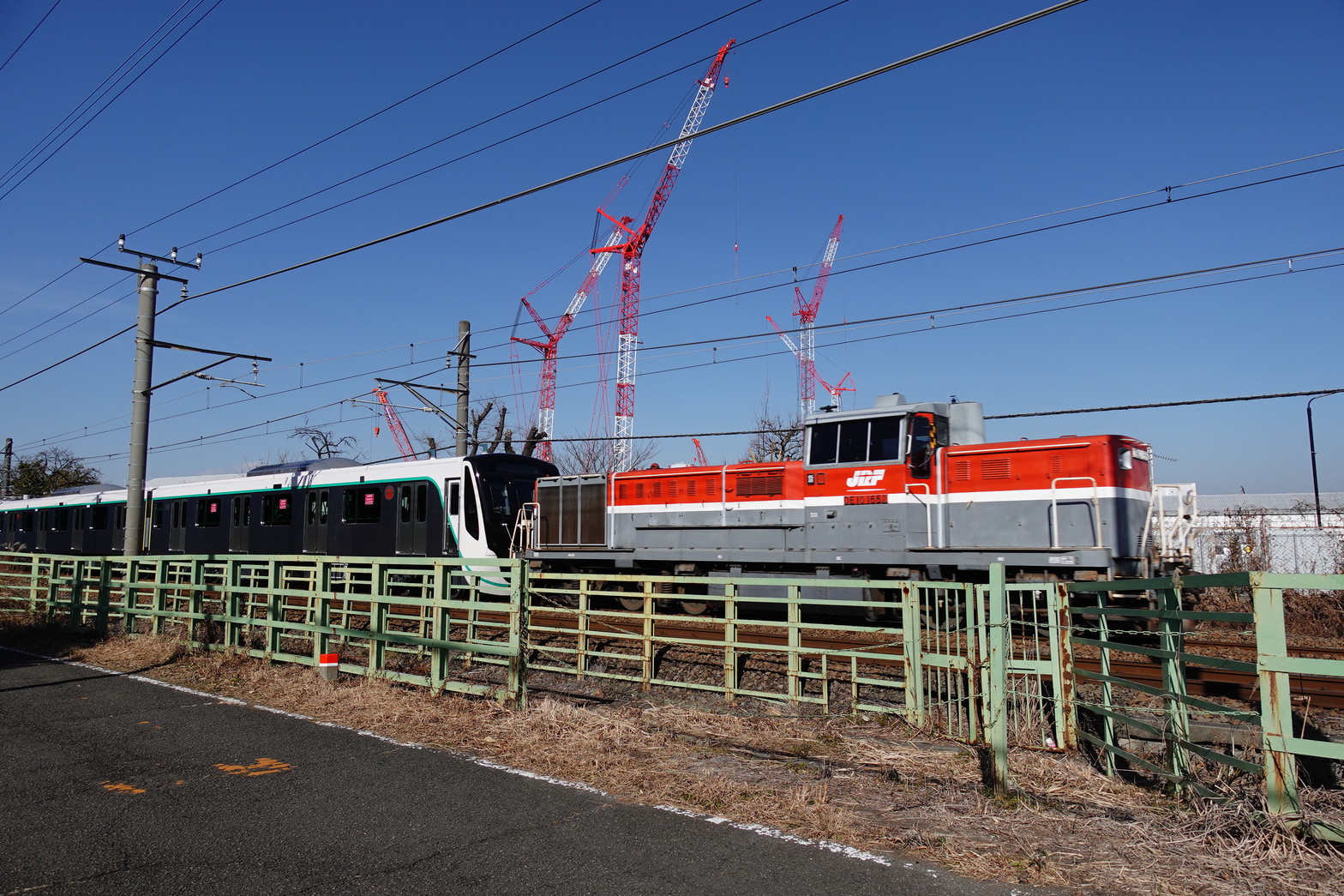 たまたま見かけない電車をひっぱる電気機関車に出会いました。