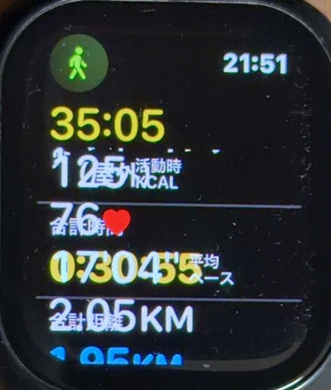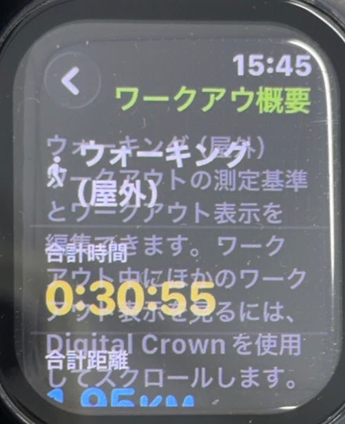 AWを再起動してワークアウトアプリ起動したら一瞬この表示で直後に普通の表示に戻った。