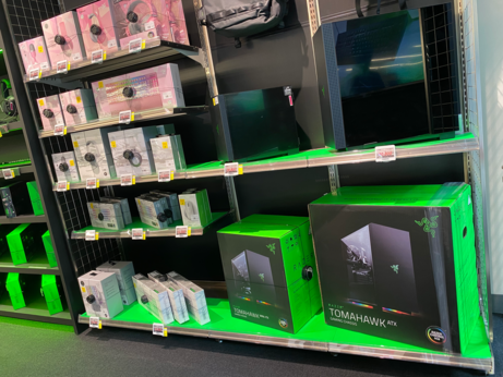 職場の近所にあるJoshinにいつの間にかRAZERコーナーが出来てた!ゲーミングチェア座ってみたけど腰サポートめっちゃいいなコレ!PCケースも置いてあってなかなかの品揃えでした