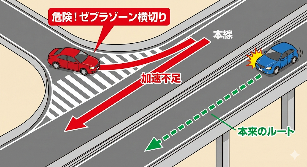 1. 昨日の事例:ゼブラゾーン横切り(加速不足での無理な合流)