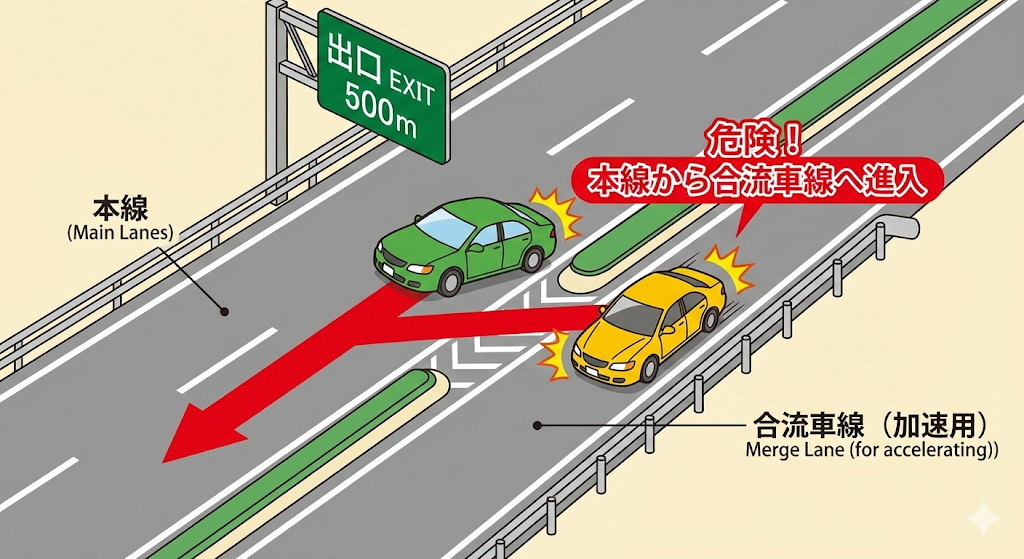 それだけなら車線間違えたのかなと思いますが高速出口で合流車線に進入してました