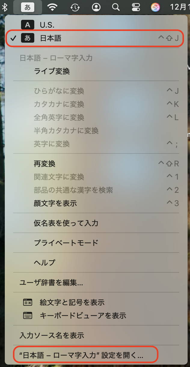 日本語モードにして、"日本語 - ローマ字入力"設定を開く... から設定項目に出てきます