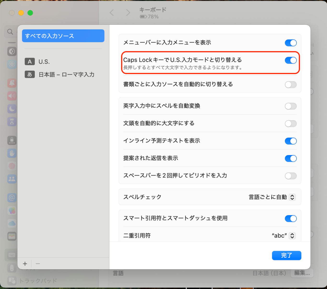 macOS(Sequoia)でもCapsLock単押しでモード切り替えできますよ。