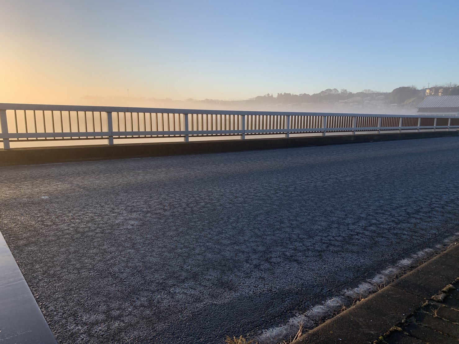 未明から早朝にかけて流星と朝日を撮っていると、みるみる道がアイスバーンに。