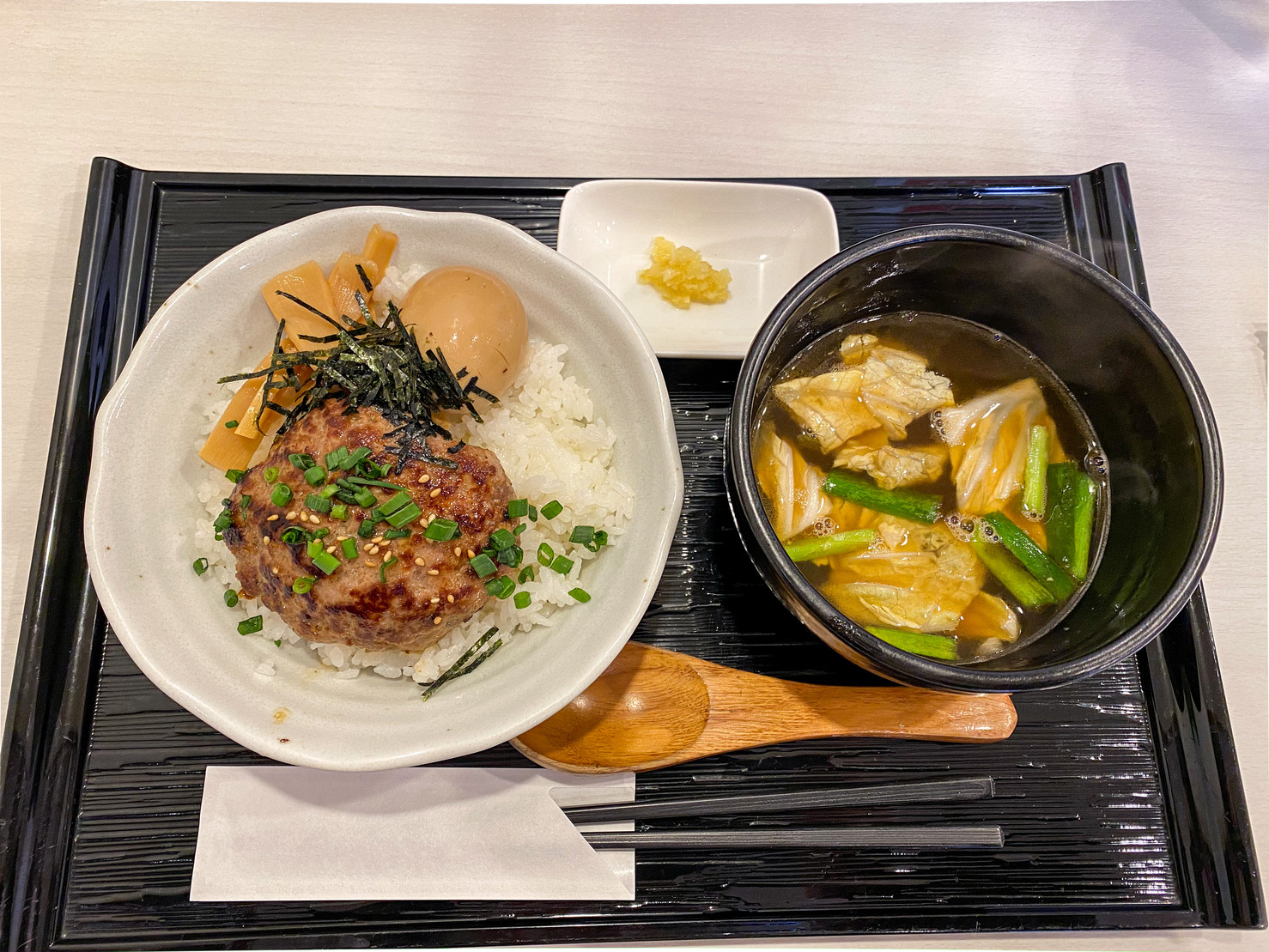 出汁にハンバーグを突っ込んで食べる汁バーグ。
