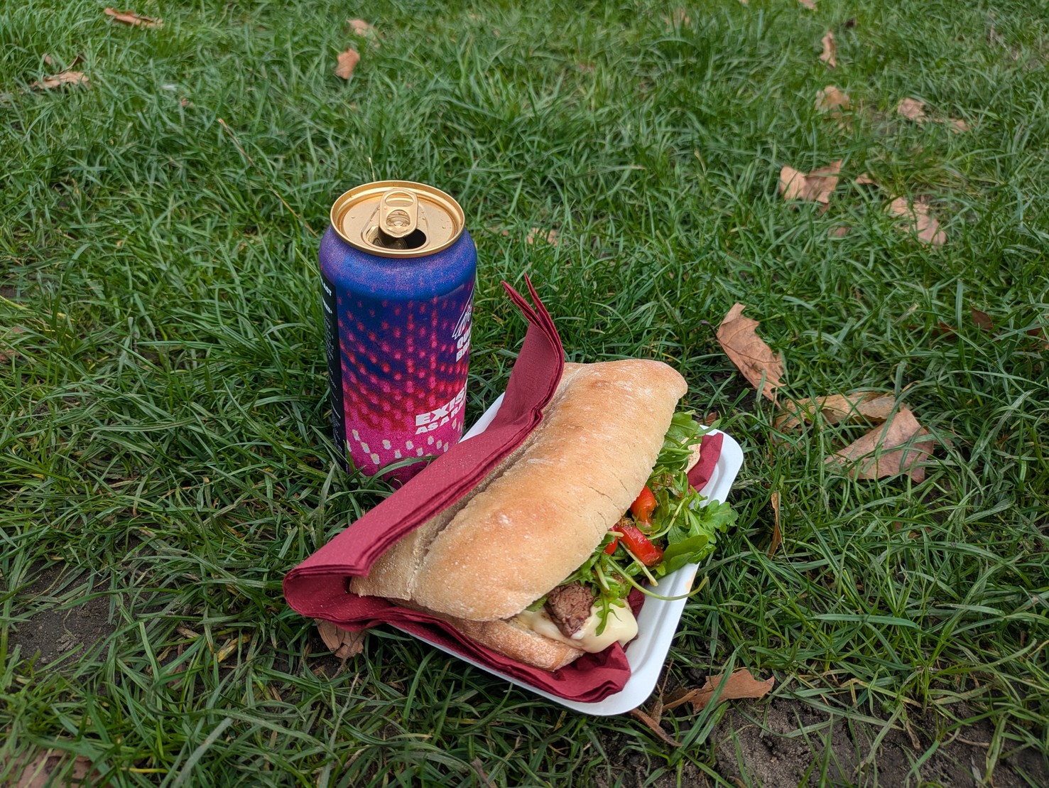 ウイークエンドマーケットでランチビールとサンドイッチで20ポンドうまいけどデカすぎ