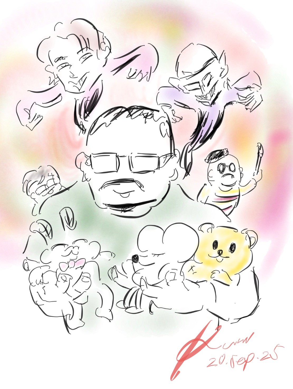 グルドンの個人的歴史-2 しのりん家iPhone16騒動がおもしろすぎてラクガキはじめたしのりん家。手に馴染むにつれてどんどんシンプルになっていき、今では2人とも大好きなキャラに。