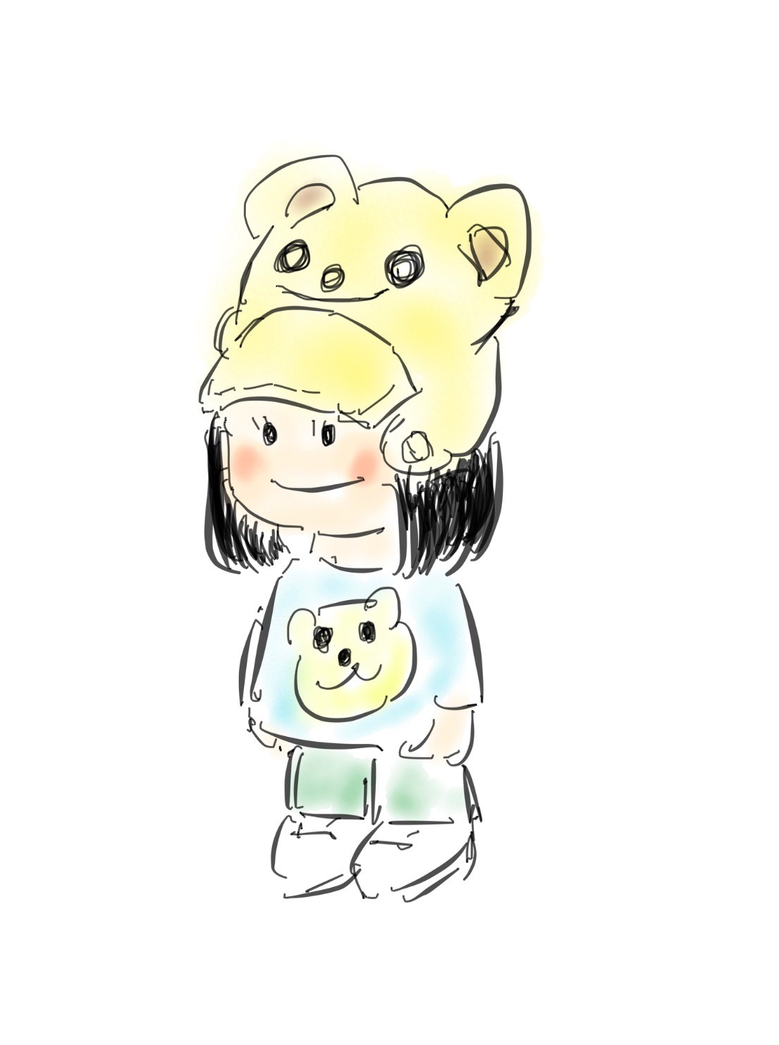 今朝見かけたクマ好きの女の子。保育園ぐらいかな。