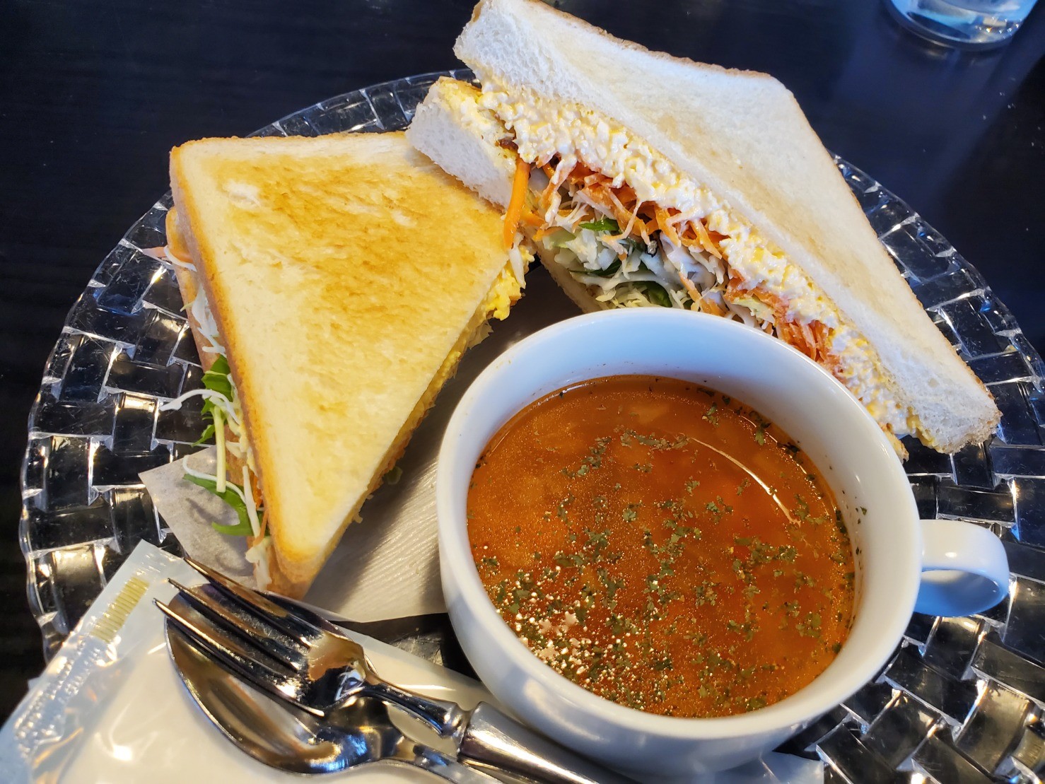 このランチが450円って日本の物価心配になる。そしてサンドイッチめちゃ美味しい。