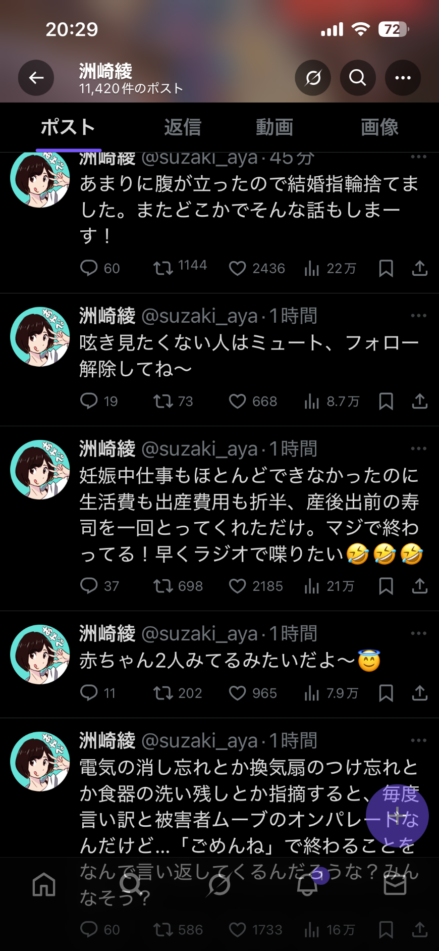 “あまりに腹が立ったので結婚指輪捨てました。またどこかでそんな話もしまーす!” https://x.com/suzaki_aya/status/1974787642605838522?s=12