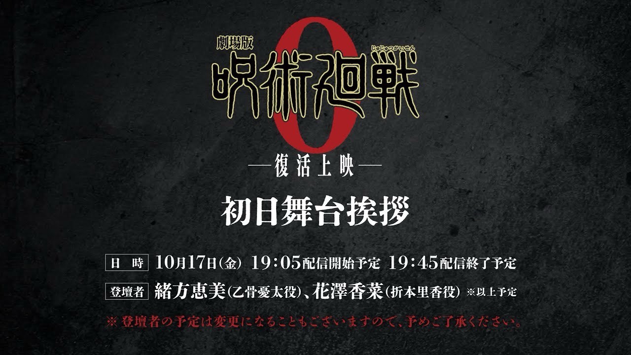 “【アーカイブ期限:2025/11/6(木) 23:59まで】『劇場版 呪術廻戦 0』復活上映 初日舞台挨拶 | 出演:緒方恵美、花澤香菜” https://www.youtube.com/watch?v=GYkBp2uQHNY
