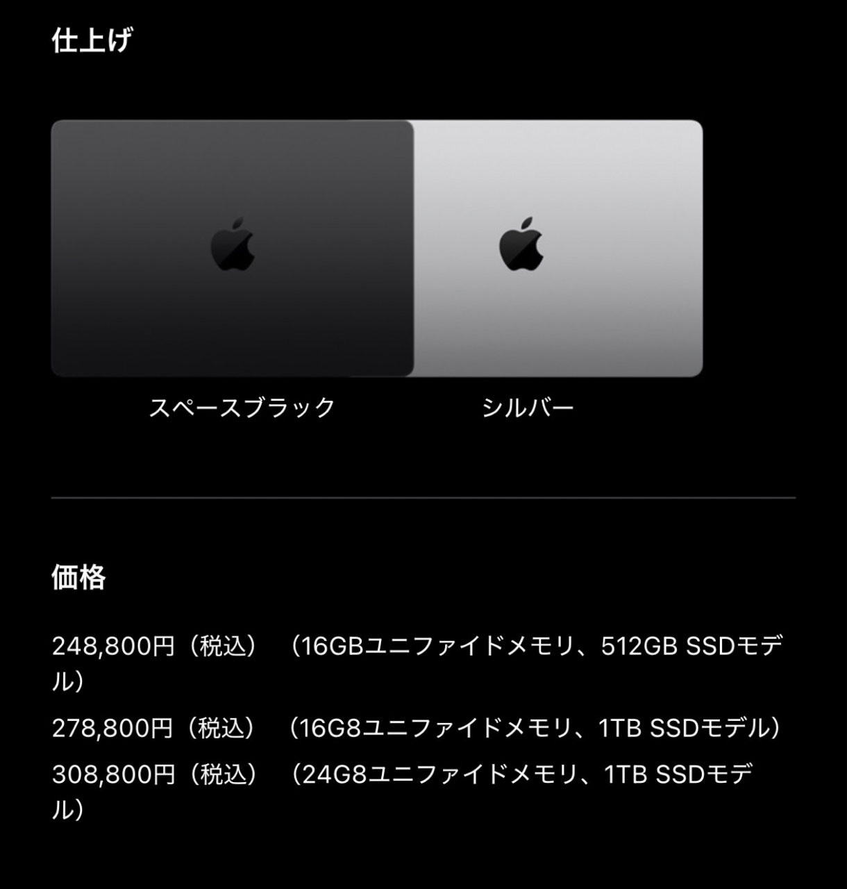 MBP M1 Max 10コアCPU、32コアGPU、64GBメモリ、2TBストレージが45万で当時はとても高いと思ったけど、今思うといい買い物だった。