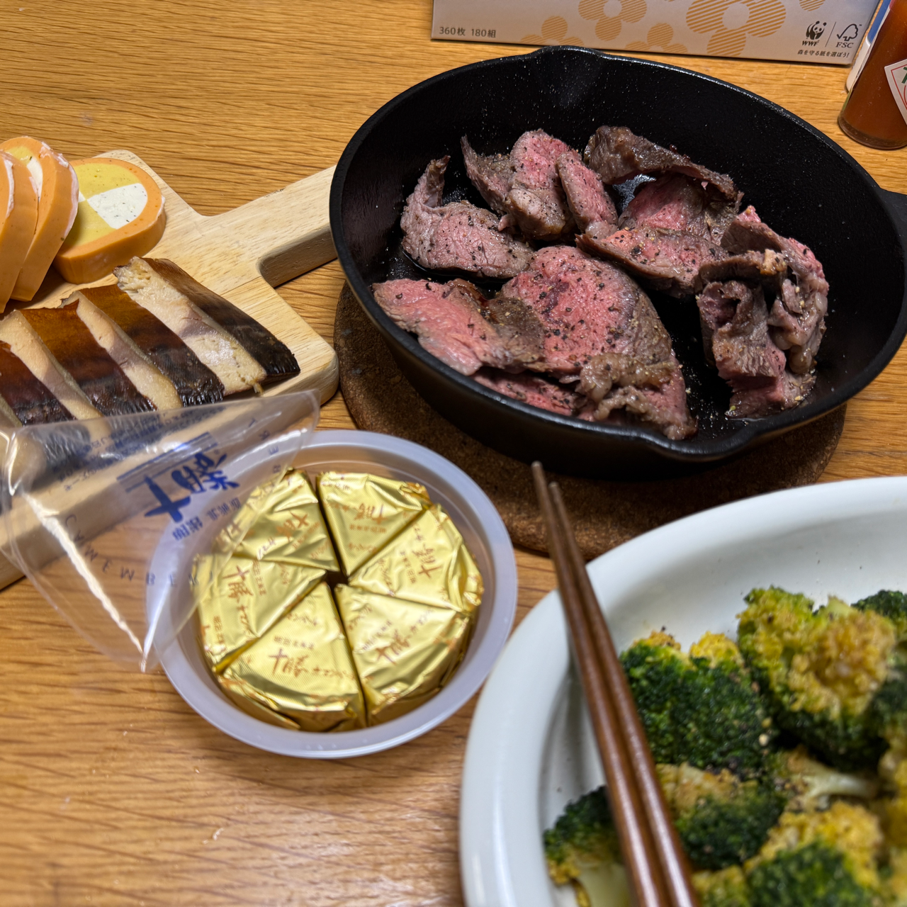 昨日は新しい焼き方に挑戦したけど失敗してカッチカチステーキになってしまったのでリベンジステーキ。無事柔らかく焼けました。