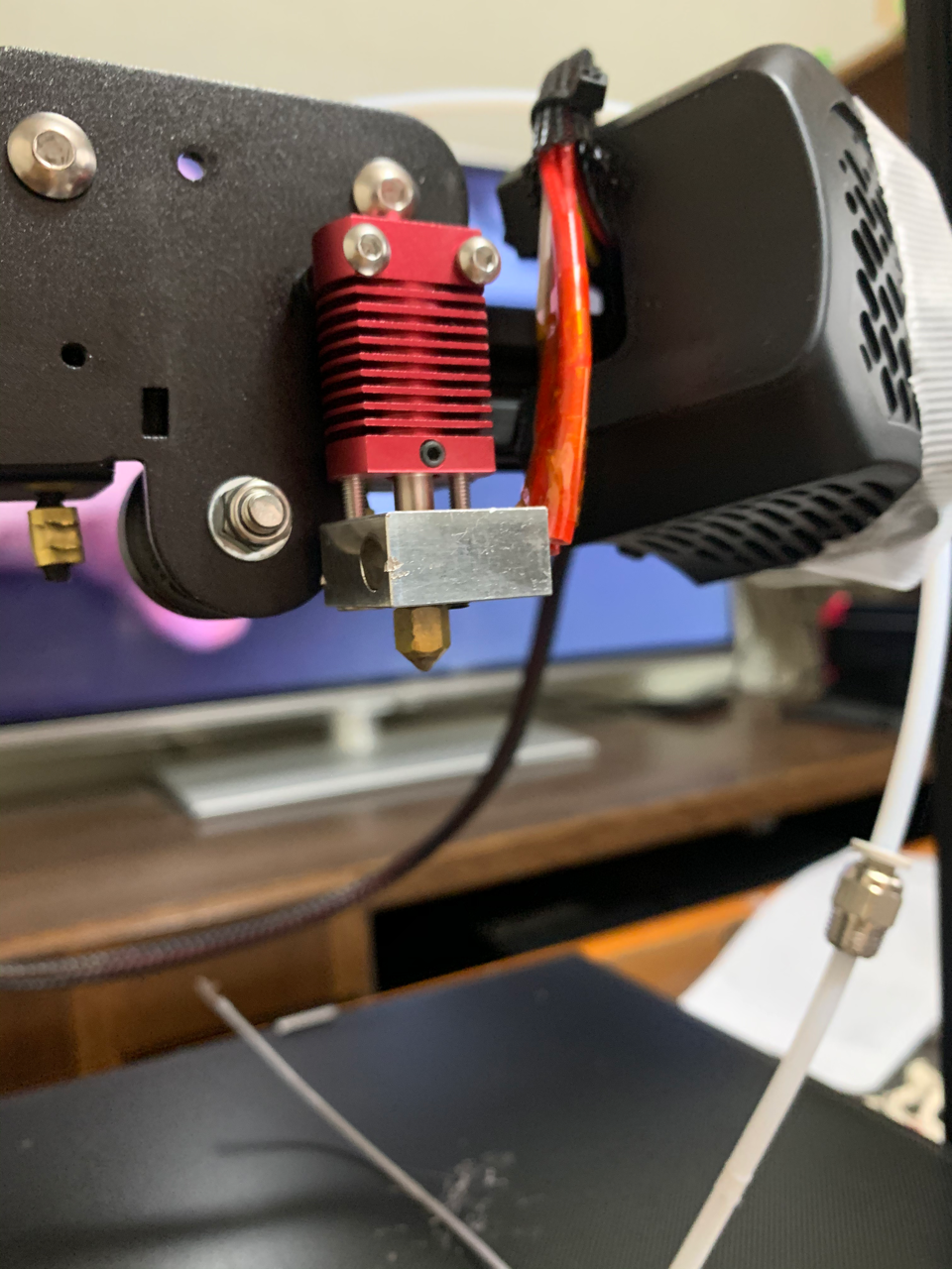 今回はフィラメント送り出しの所で滑る感じで送り出せなかった一旦この辺をバラしてチューブ外してみたけど、送り出しの根本のところで詰まってた