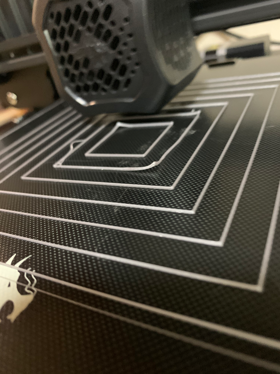 最初はいい感じに出てたんだけどしばらくして見てみたらフィラメントが出ていない!