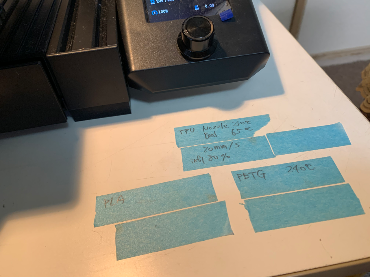 これでPLA(prusa)、PETG (polymaker)、TPU(Sainsmart)はまぁまぁキレイに出せる!