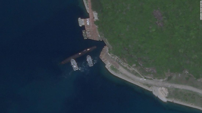 中国潜水艦が地下基地を使用する場面か、衛星写真が波紋