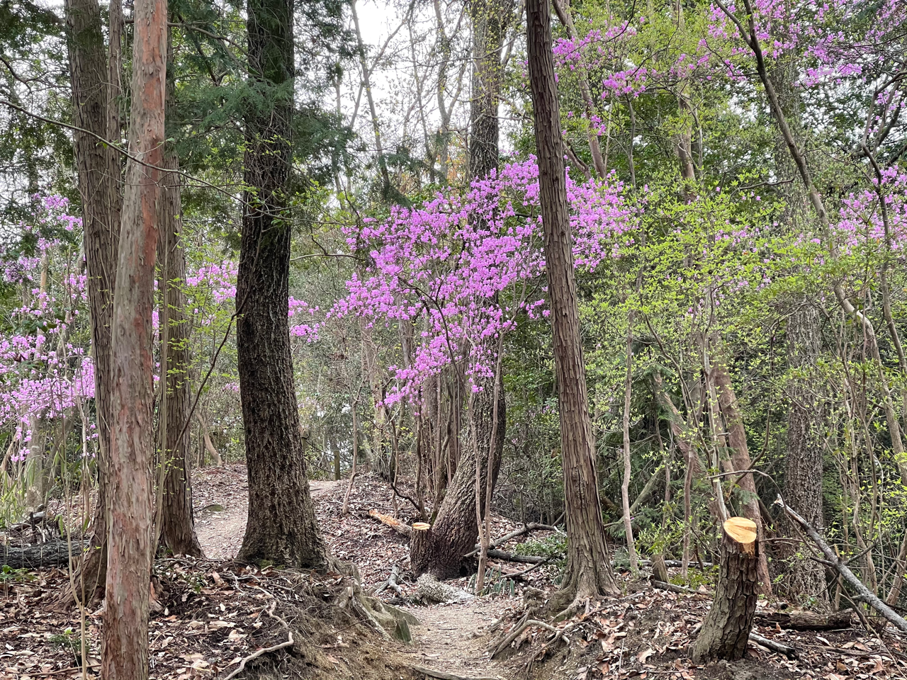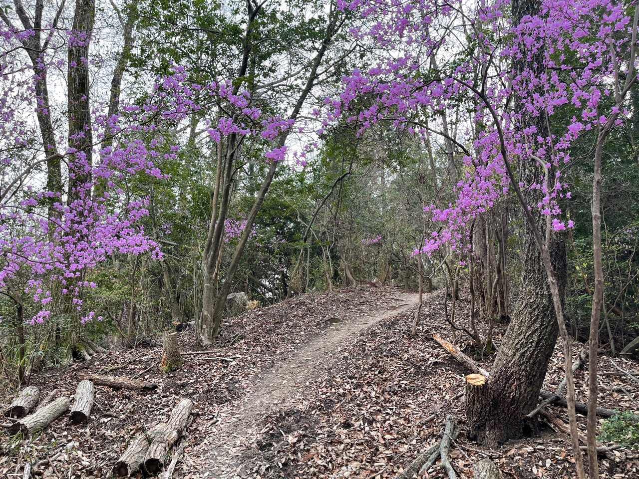近所のトレイル歩いて色が完璧に春だったあと大きなヘビと顔の周りウロウロする小さい虫がいた