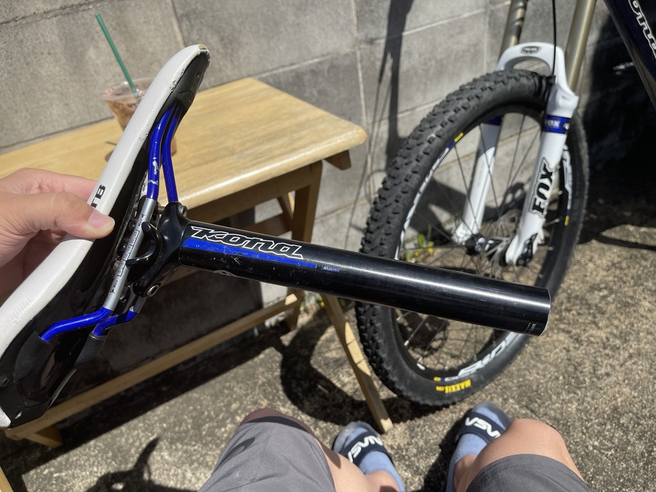 昨日シートポストカットして1番下まで下げれるようにしました!