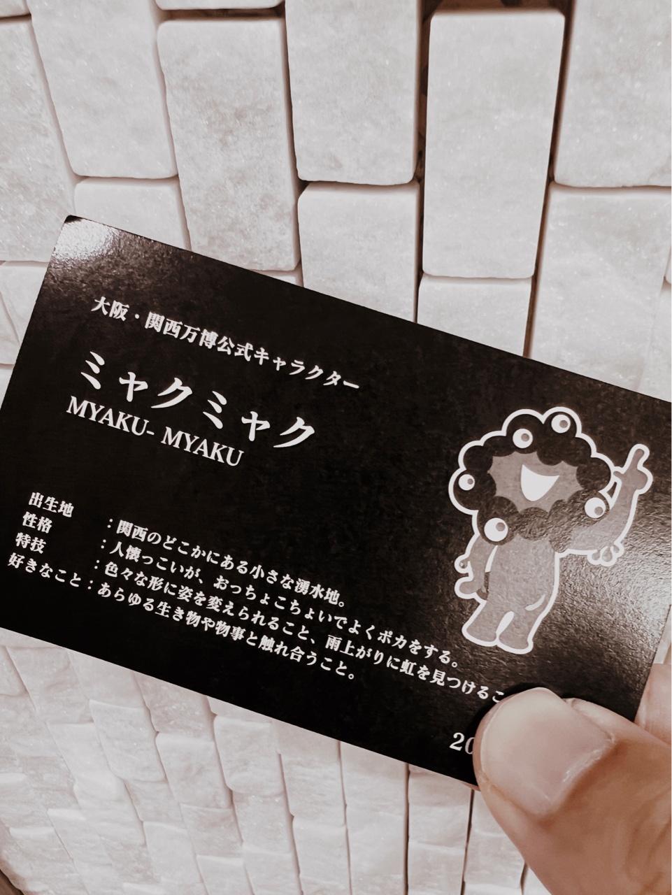 ミャクミャク(のスタッフ)から名刺いただきました。大阪ではミャクミャクグッズを何かしらつけてる人をよく見ますが他の地域ではどうなんでしょうね。