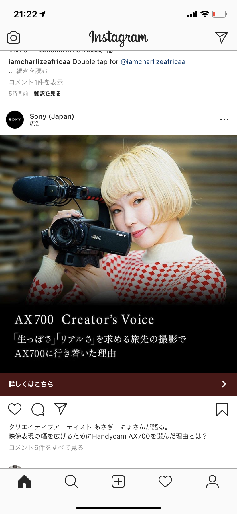 ZV-1で盛り上がってるけど、SONYからの広告はFDR-AX700。ハンディーカムも推してるんですね。