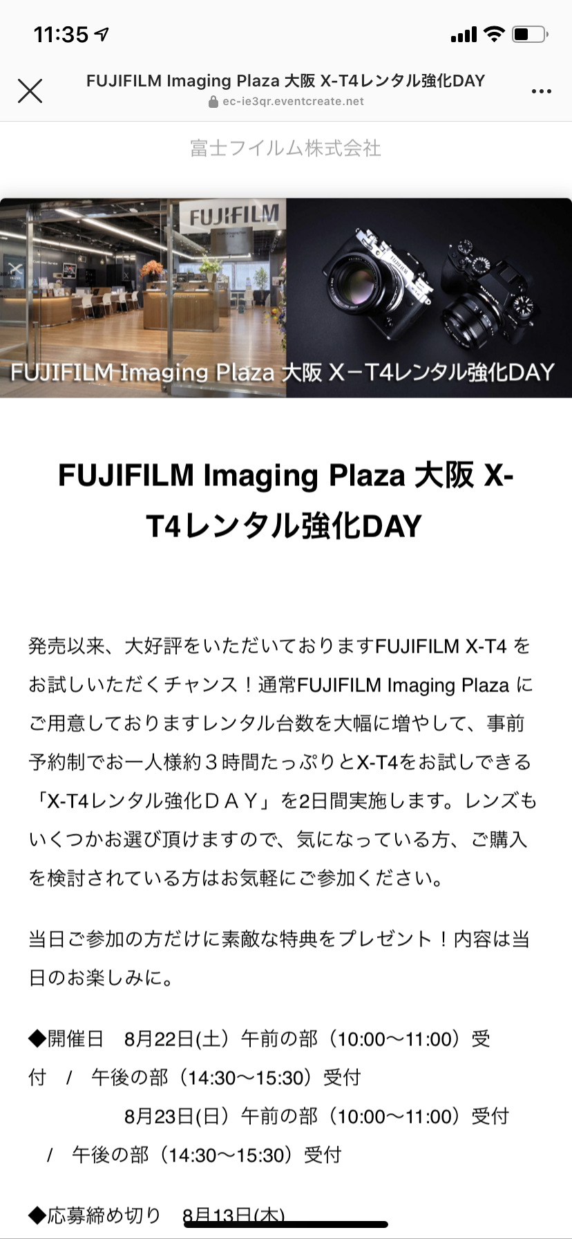 FUJIFILM Imaging Plaza 大阪 X-T4レンタル強化DAY