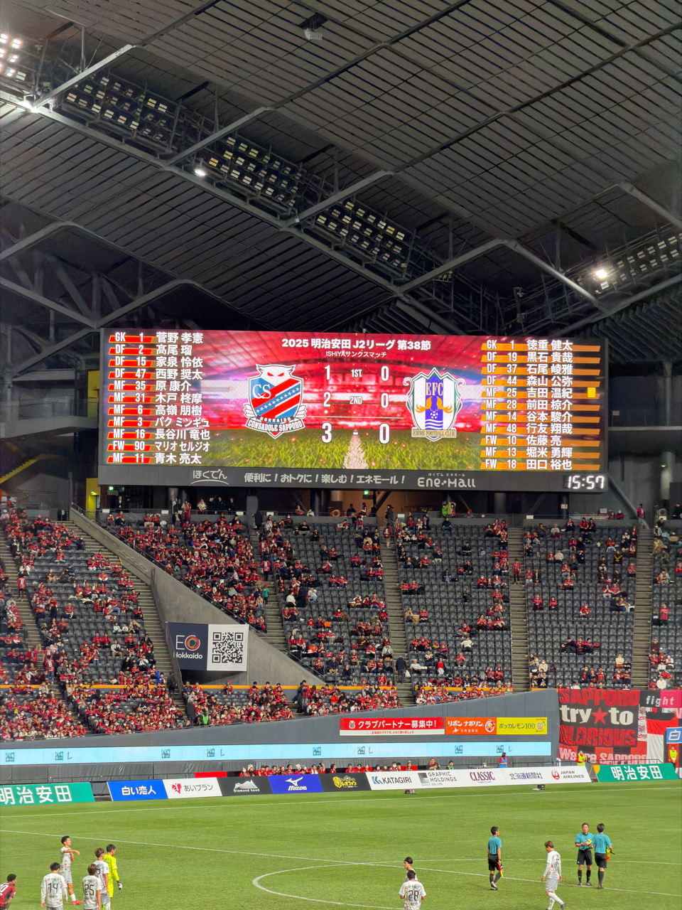 二週連続で遠征。先週は今治で、今週は札幌。新千歳に向かうJAL便に札幌ユニフォームを着た札幌サポーターが多数いる。川井新監督の報道もあるが、まずは最終戦きっちり勝って、引退する深井の花道を飾ってやろう。#consadole