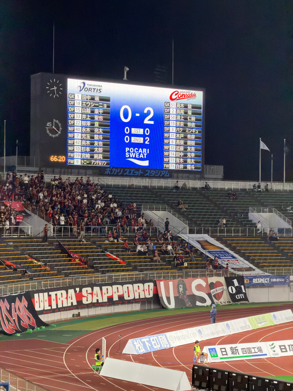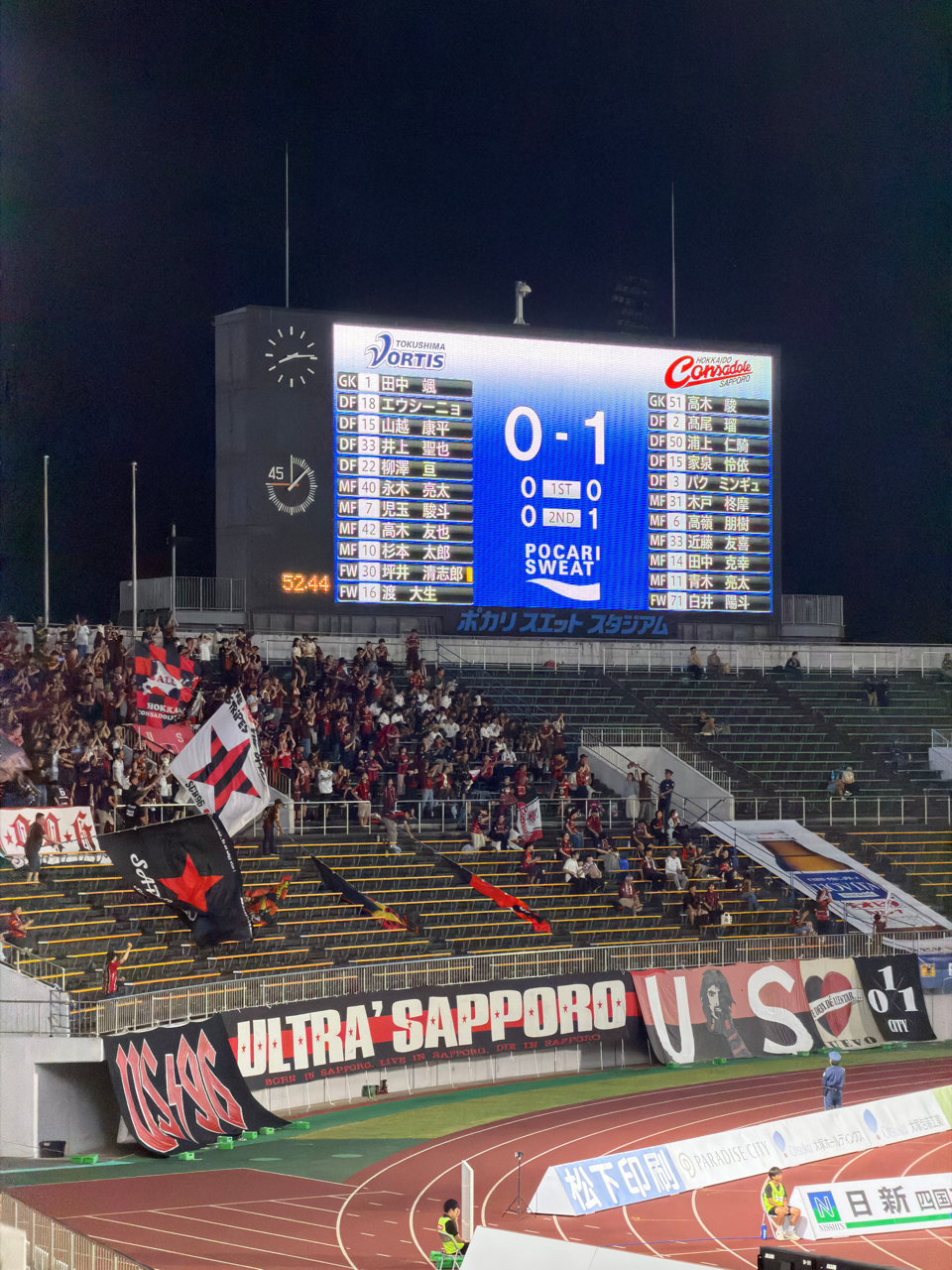 徳島の前半の枠内シュートは0本で、札幌がずーっと攻めていますが、相手の守備が固くてなかなかシュートが打てません。#consadole