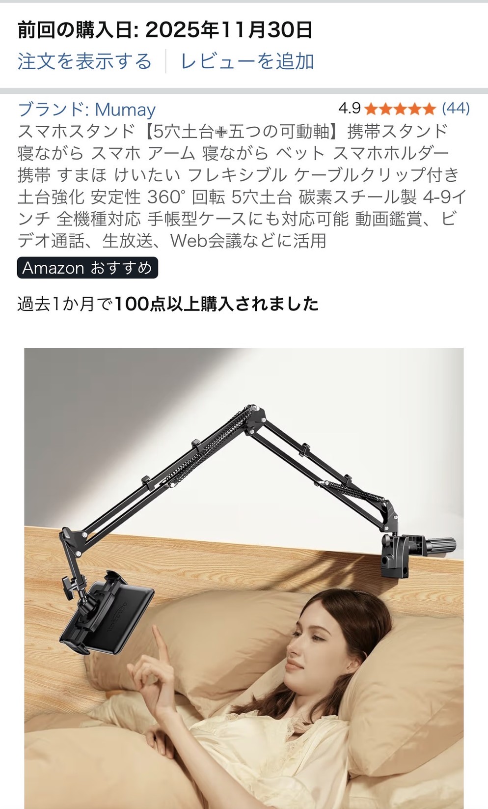 Amazonのブラックフライデーで買ったのは、スマホ・タブレットアーム。2年前に買ったULANZIのものはアームは良いけど、ベッド等への取り付け部分がイマイチで、すぐにズレてしまうのが難点。壊れてないから勿体ないけど、2年使ったから良しとしよう