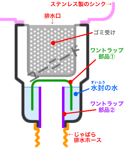 @suwan これの水封の水、というのが切れてると下水の臭いが上がってしまいます。通常普通に排水口に水を流せば充填されます。これで臭気が抑えられないなら原因は他にあります。